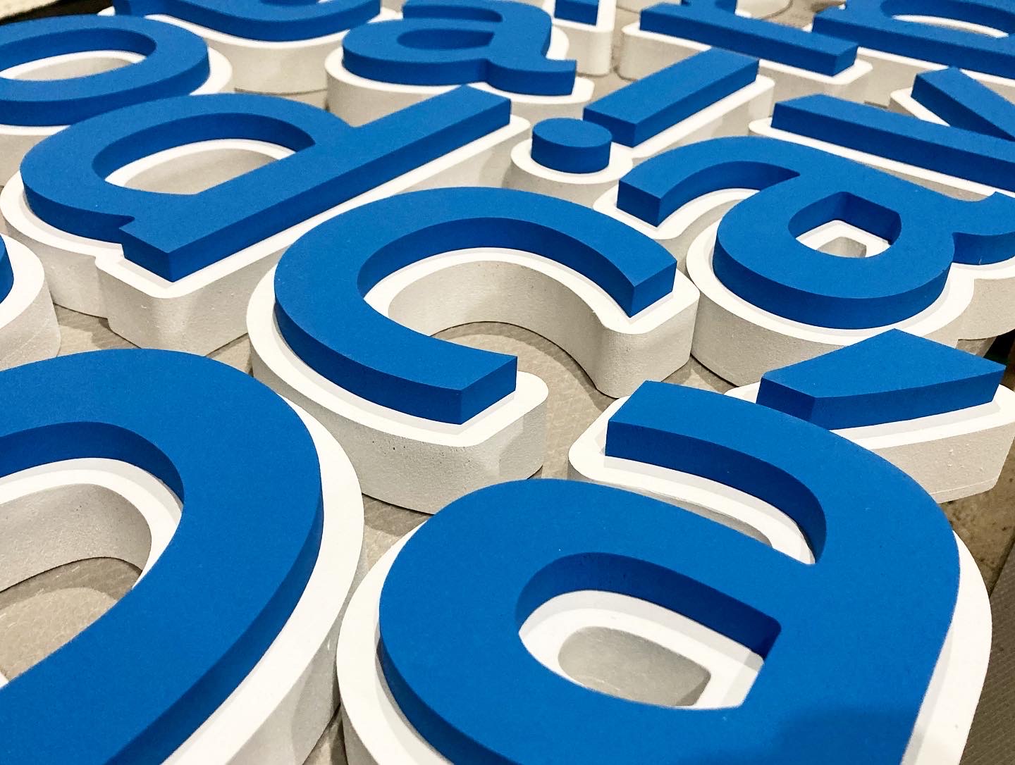 3D dvojfarebné logo z tvrdeného polystyrénu – interiér / exteriér