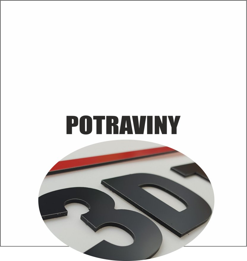 3. 3D nápis: POTRAVINY/mat.Dibond Exteriér PRO/Bold