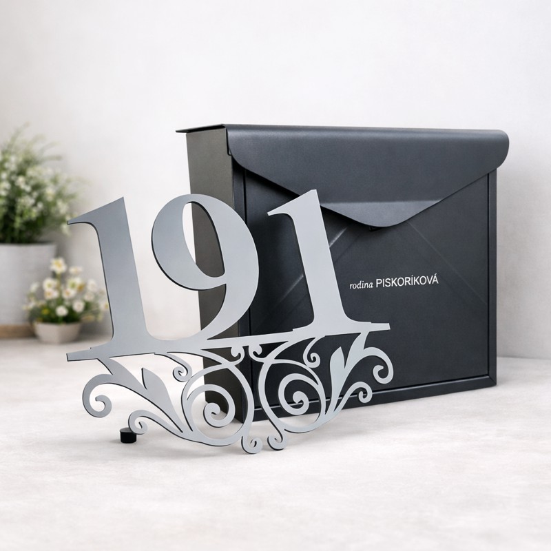 Číslo na dom Ornament + Poštová schránka + Gravír mien na schránku ZADARMO