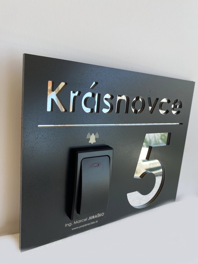 Voliteľné údaje na tabuľke: číslo na dom (vyrezané so zrkadlovým podkladom)