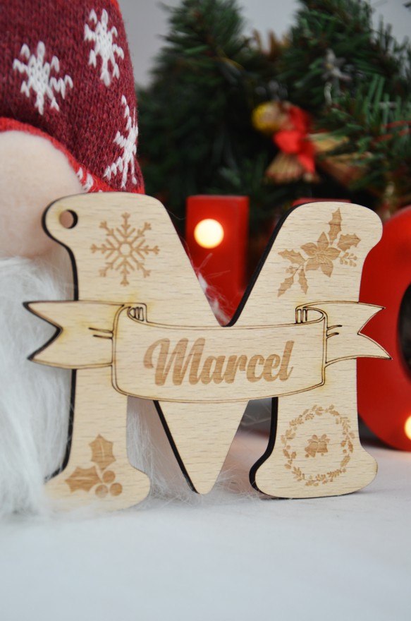 Drevená vianočná ozdoba: PÍSMENKO S MENOM