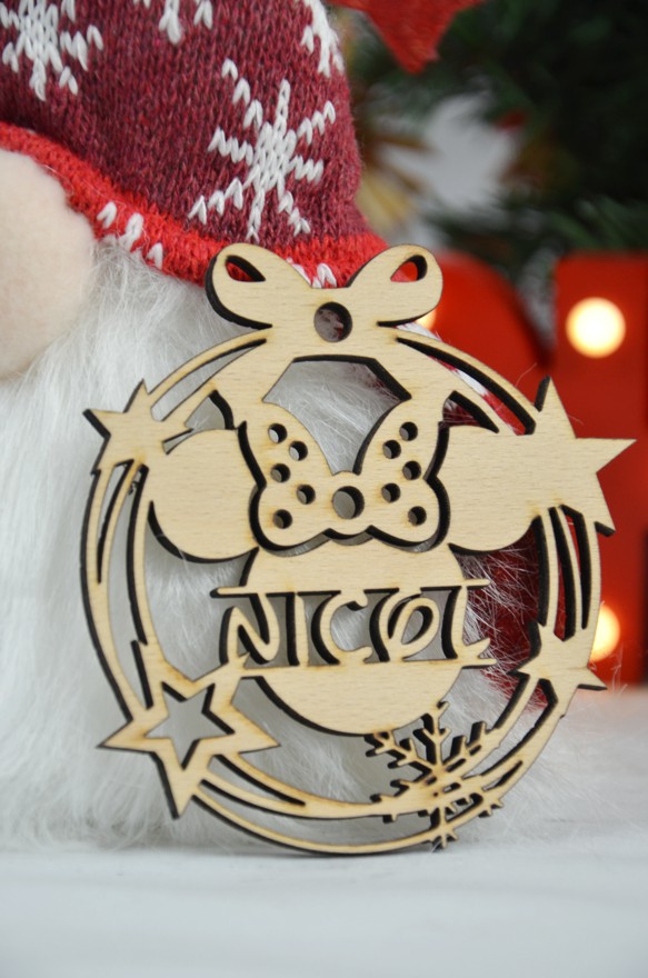 Drevená vianočná ozdoba: MINNIE S MENOM