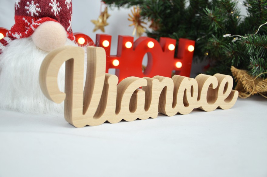 Nápis Vianoce je originálny kúsok pre Váš domov. Je vyrobený zo surového smrekového dreva. Hrúbka názvu je 1,8 cm.