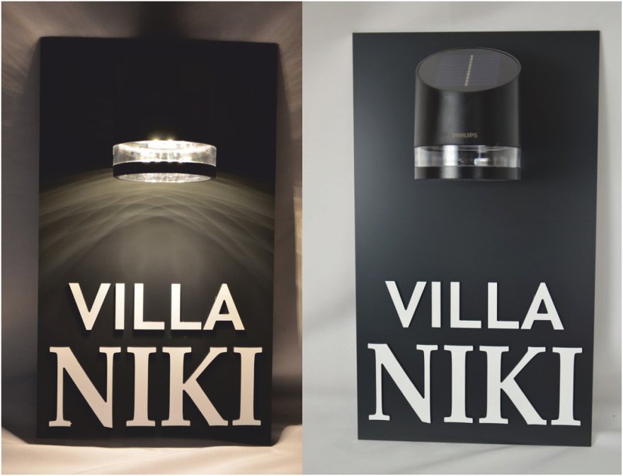 Označenie pre firmy so svetlom SOLAR  sme vyvíjali niekoľko mesiacov, aby spĺňalo všetky naše (Vaše) náročné normy a vyvinuli sme popisné číslo z kvalitných komponentov, ktoré sa Vám nabije cez deň a v noci svieti až do 8 hodín pri plnom nabití, môžete ho vypnúť a žiadne počasie Vám ho len tak ľahko nepoškodí. Solárny panel je zabudovaný v tabuľke, takže žiadne káble, len osadíte tabuľku na bránku, múrik alebo na dom a máte moderné číslo na dom! Navyše nie sme obmedzený rozmerom, preto ak máte väčší počet číslic, tabuľku prispôsobíme veľkostne bez problému.