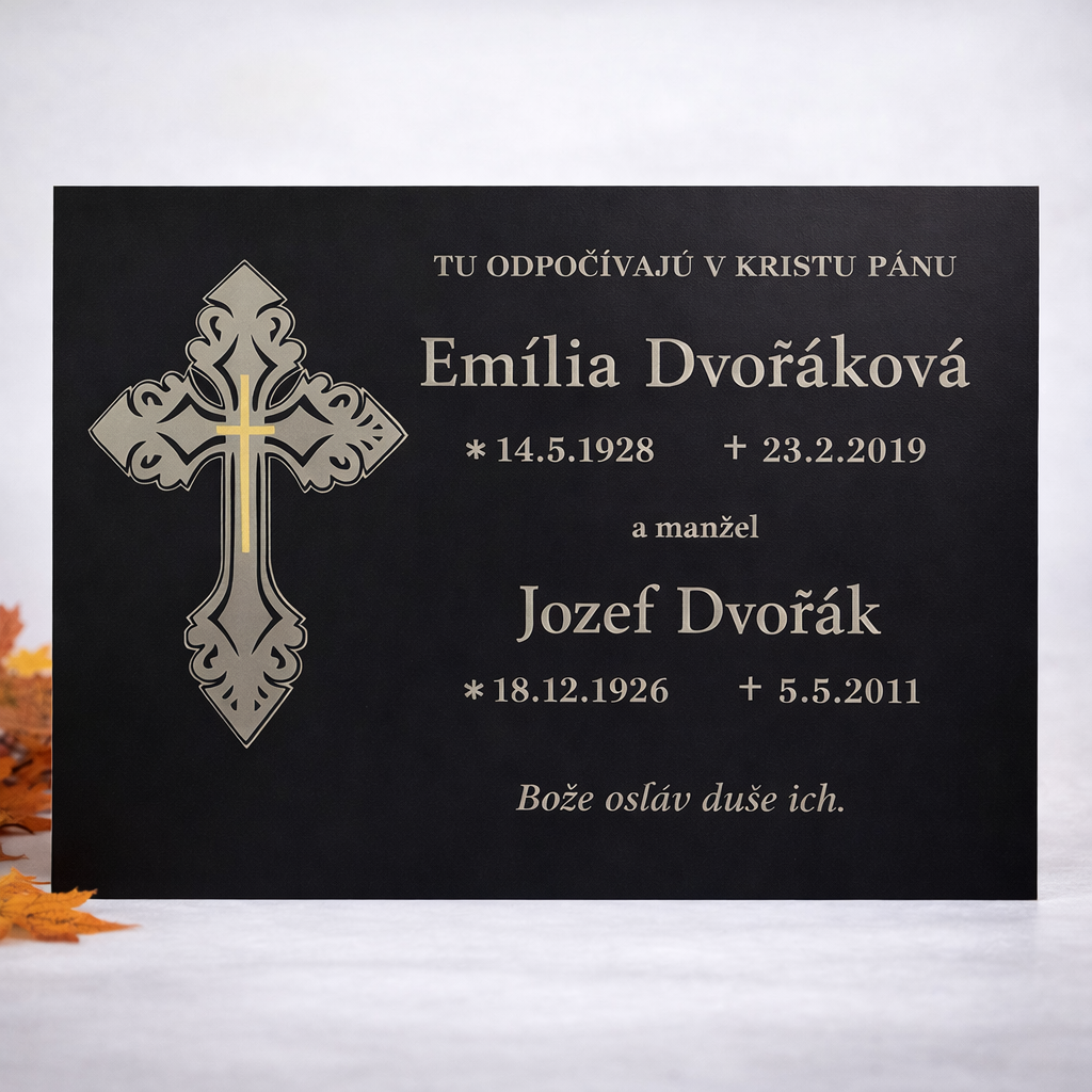 Pamätná tabuľka na náhrobný kameň s vlastným textom a krížikom