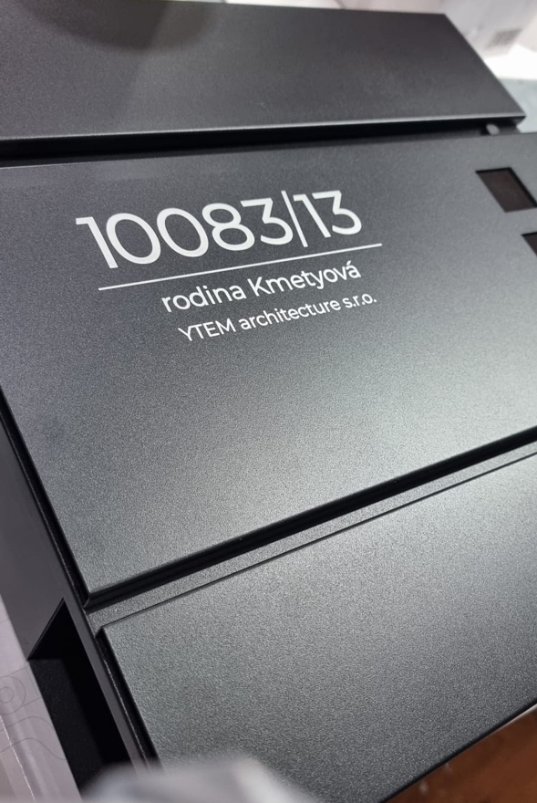 Ukážka poštovej schránky s gravírovaným menom:
