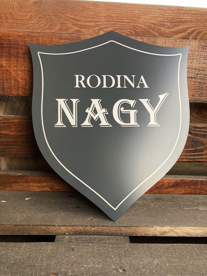Meno v erbe je elegantne vygravírované, preto Vám na tabuľke vydrží veľa rokov.