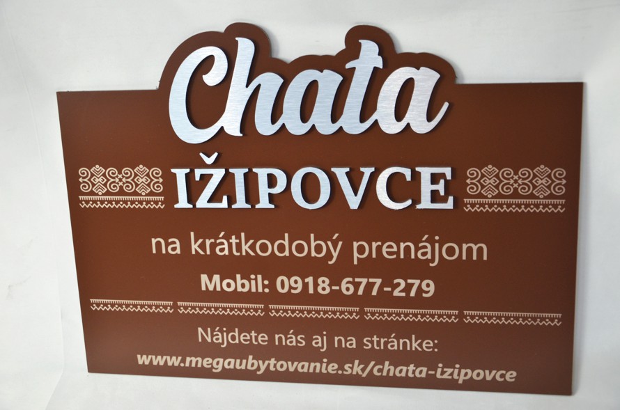 Tabuľka s názvom chaty/penziónu/hotela s gravírom údajov